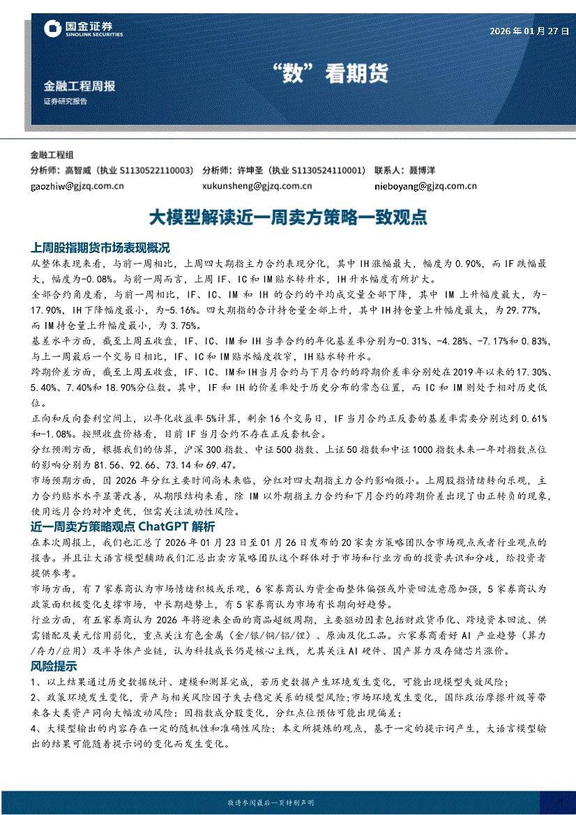 国金证券-“数”看期货:大模型解读近一周卖方策略一致观点-260127