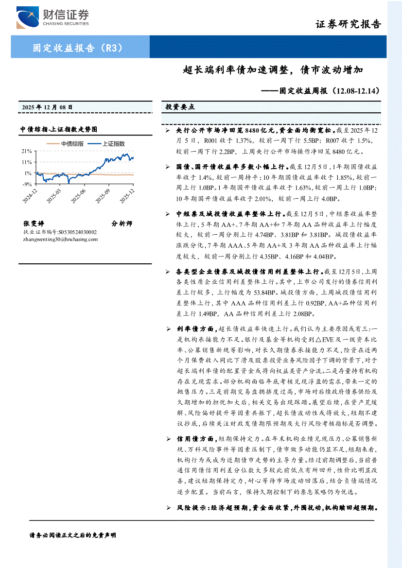 财信证券-固定收益周报:超长端利率债加速调整,债市波动增加-251208