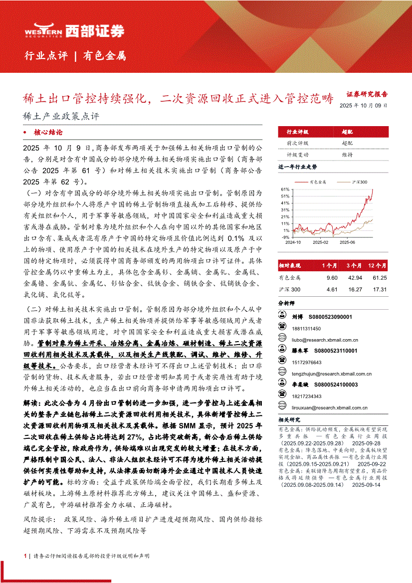 有色金属行业:西部证券-有色金属行业稀土产业政策点评:稀土出口管控持续强化,二次资源回收正式进入管控范畴-251009