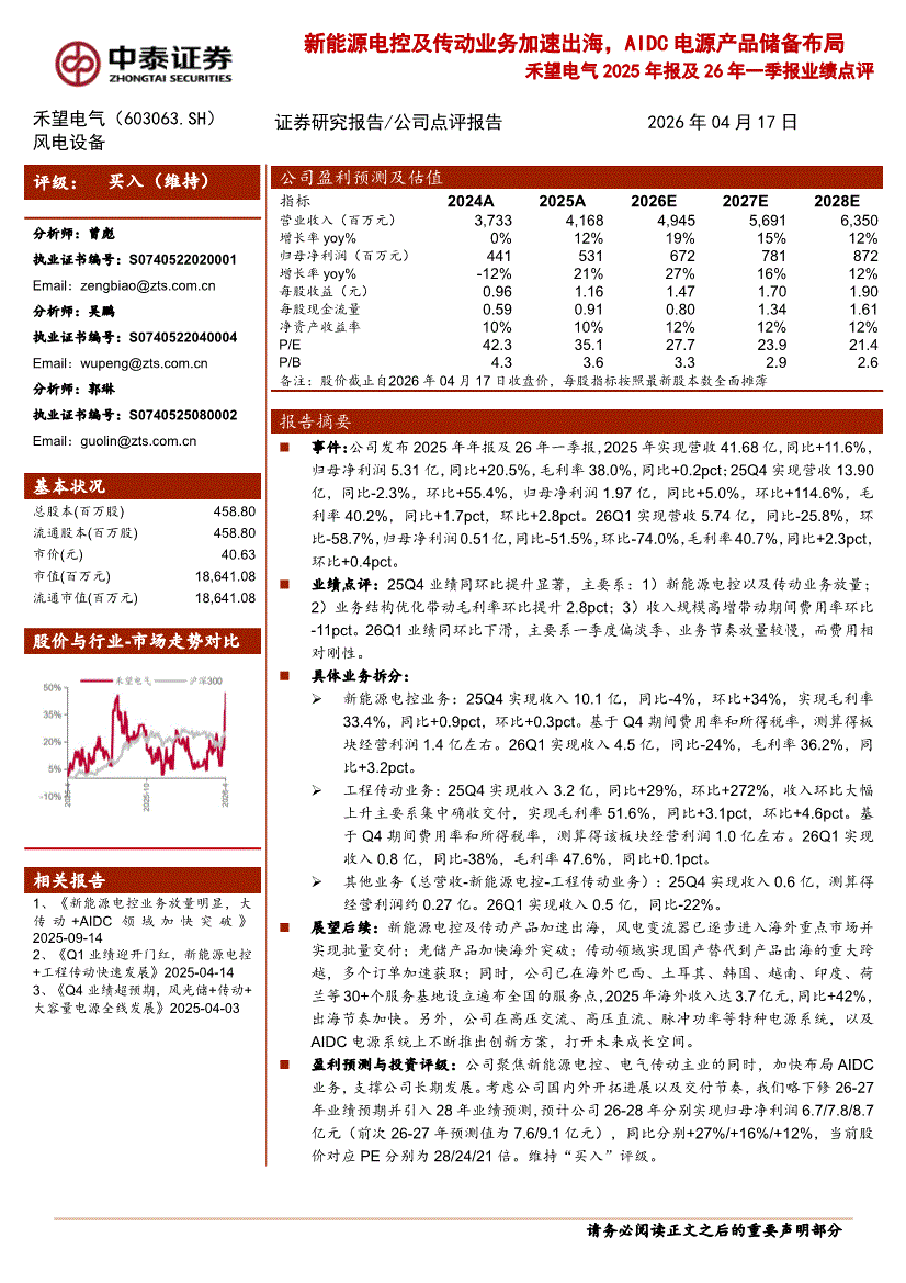 禾望电气:中泰证券-禾望电气-603063-2025年报及26年一季报业绩点评:能源电控及传动业务加速出海,AIDC电源产品储备布局-260417