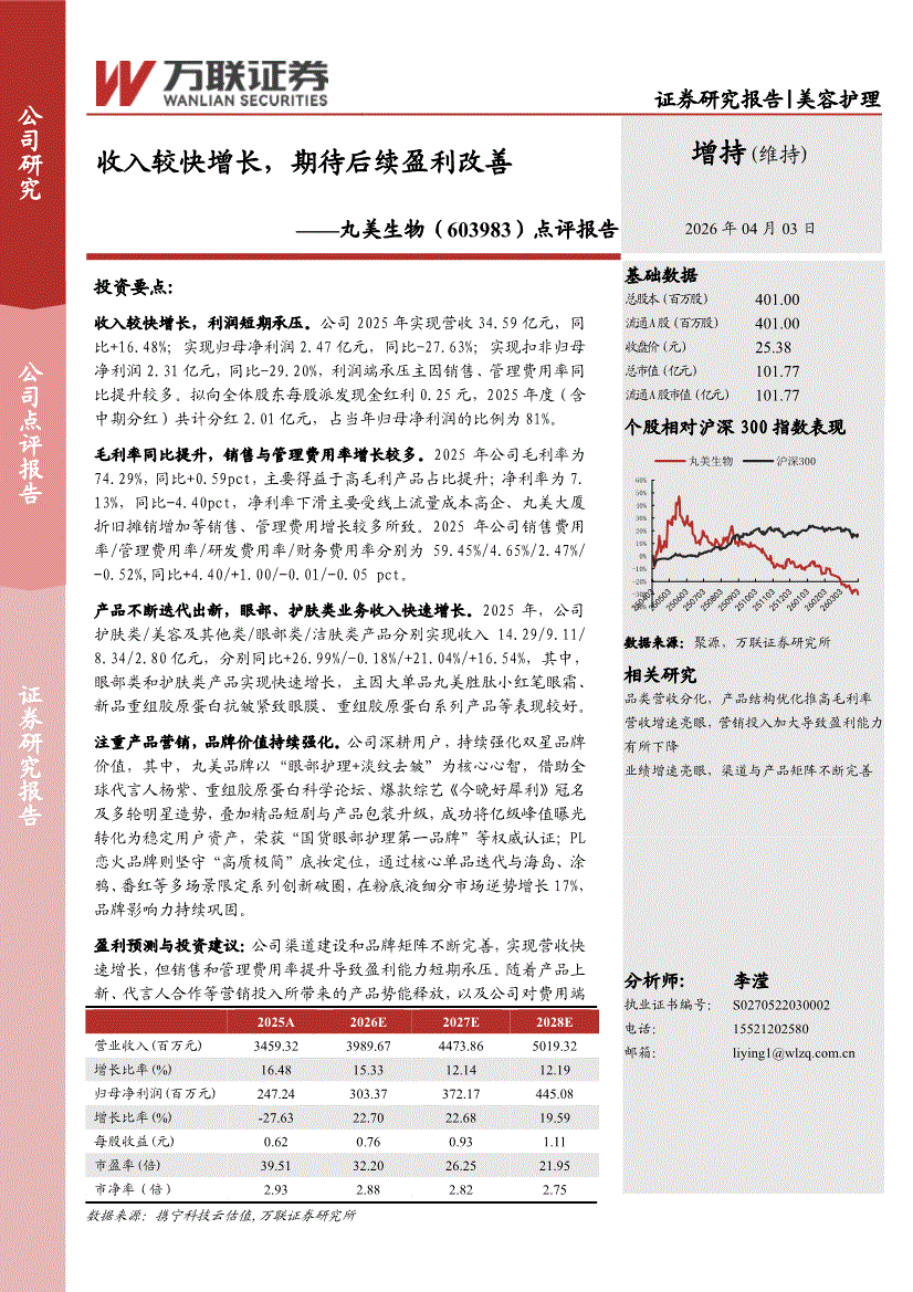 丸美生物:万联证券-丸美生物-603983-点评报告:收入较快增长,期待后续盈利改善-260403