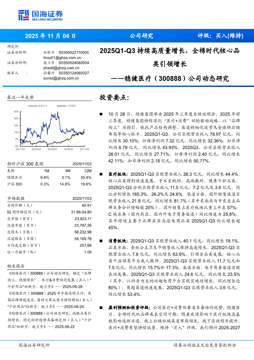 稳健医疗:国海证券-稳健医疗-300888-公司动态研究:2025Q1~Q3持续高质量增长,全棉时代核心品类引领增长-251104