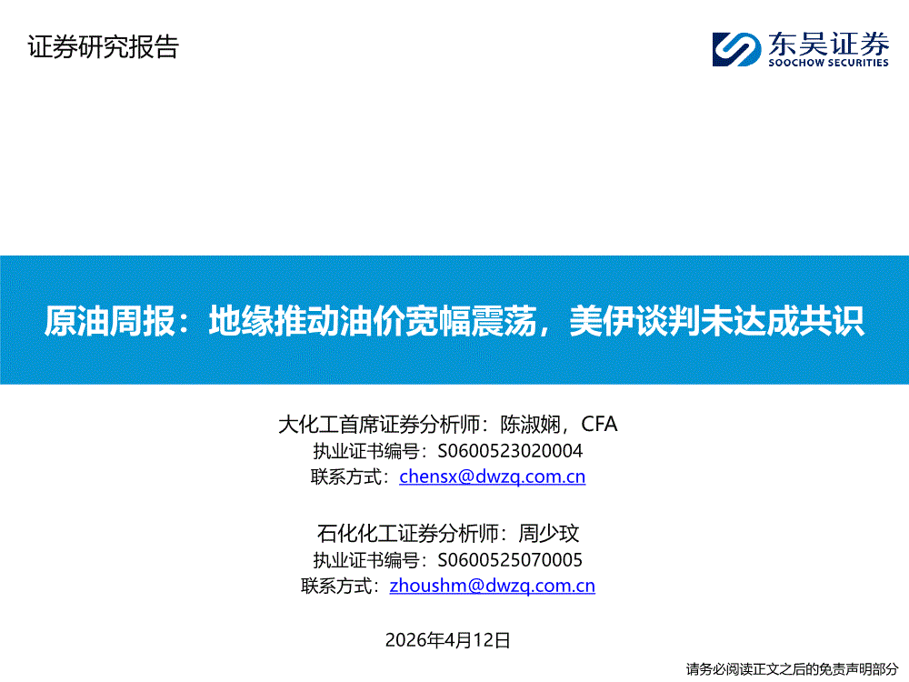 石化化工行业:东吴证券-石化化工行业原油周报:地缘推动油价宽幅震荡,美伊谈判未达成共识-260412