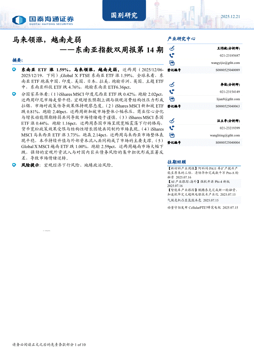 国泰海通证券-东南亚指数双周报第14期:马来领涨,越南走弱-251221