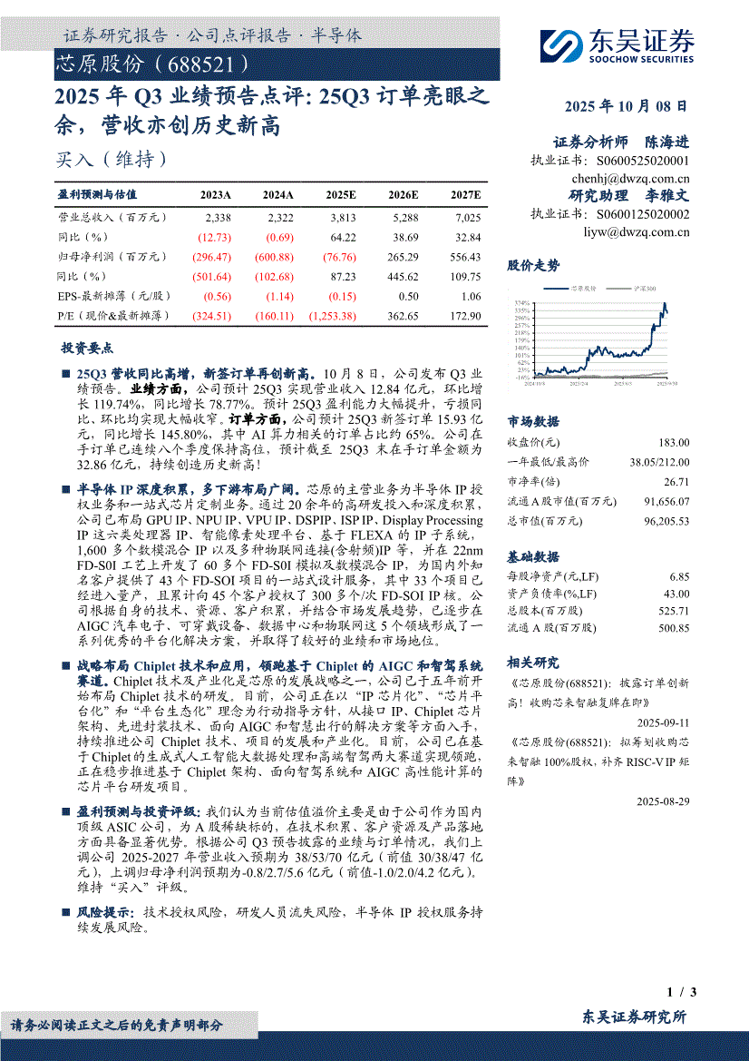 东吴证券-芯原股份-688521-2025年Q3业绩预告点评:25Q3订单亮眼之余,营收亦创历史新高-251008