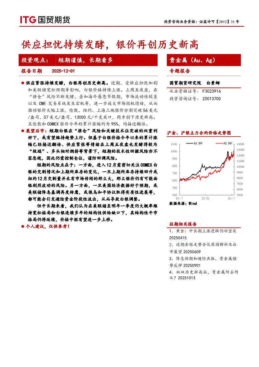 国贸期货-贵金属专题报告:供应担忧持续发酵,银价再创历史新高-251201