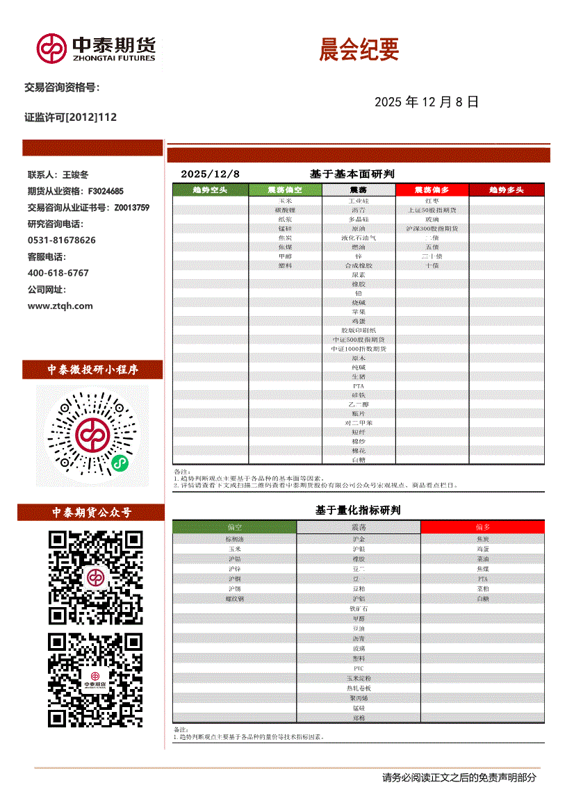 中泰期货-晨会纪要-251208