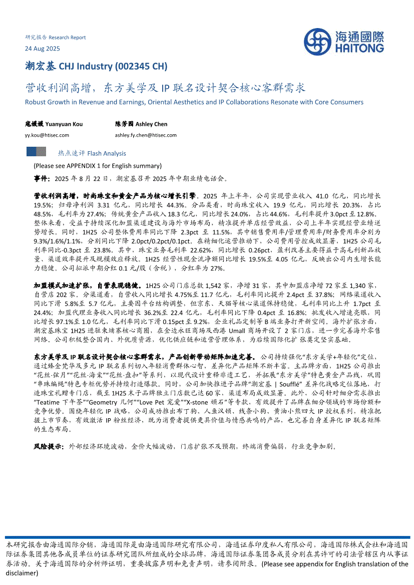 潮宏基:海通国际-潮宏基-002345-营收利润高增,东方美学及IP联名设计契合核心客群需求-250824
