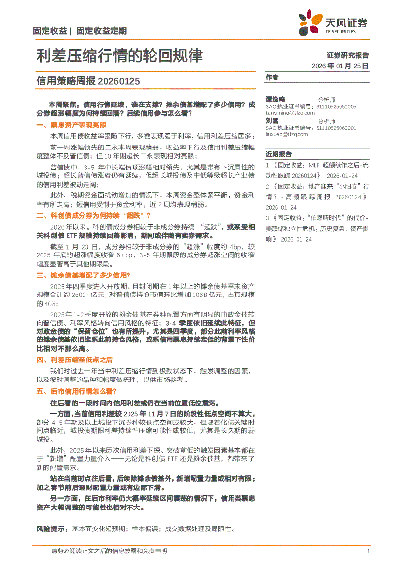 天风证券-信用策略周报:利差压缩行情的轮回规律-260125
