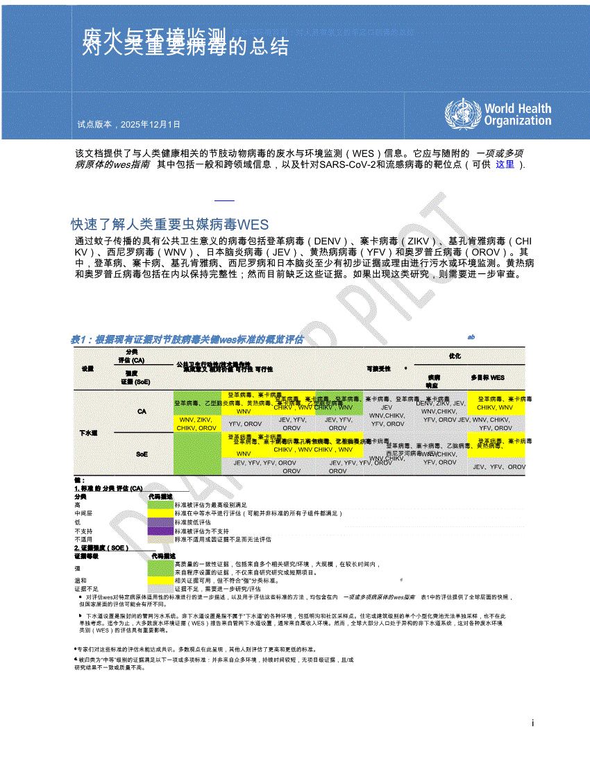 世界卫生组织-废水和环境监测:具有人类意义的虫媒病毒概述(英译中)-251201
