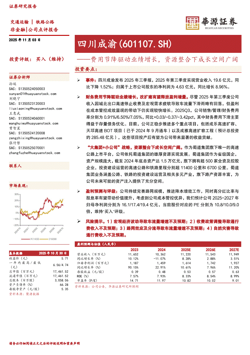 四川成渝:华源证券-四川成渝-601107-费用节降驱动业绩增长,资源整合下成长空间广阔-251103