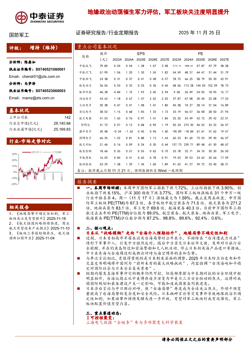 国防军工行业:中泰证券-国防军工行业:地缘政治动荡催生军力评估,军工板块关注度明显提升-251125