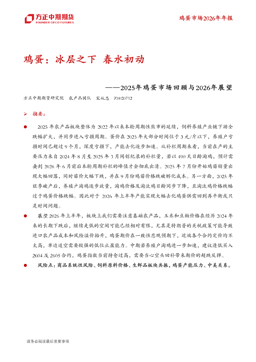 方正中期期货-2025年鸡蛋市场回顾与2026年展望:鸡蛋,冰层之下春水初动-251215