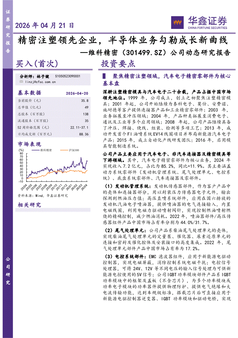 维科精密:华鑫证券-维科精密-301499-公司动态研究报告:精密注塑领先企业,半导体业务勾勒成长新曲线-260421