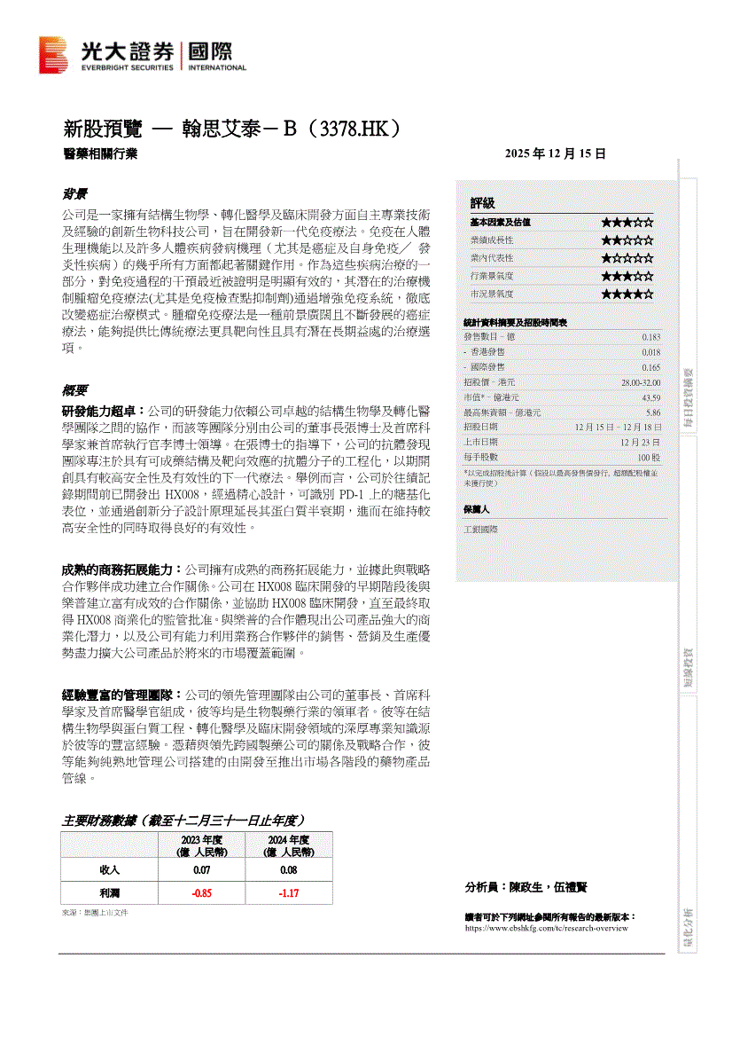 光大证券(国际)-新股预览:翰思艾泰~B(3378.HK)-251215