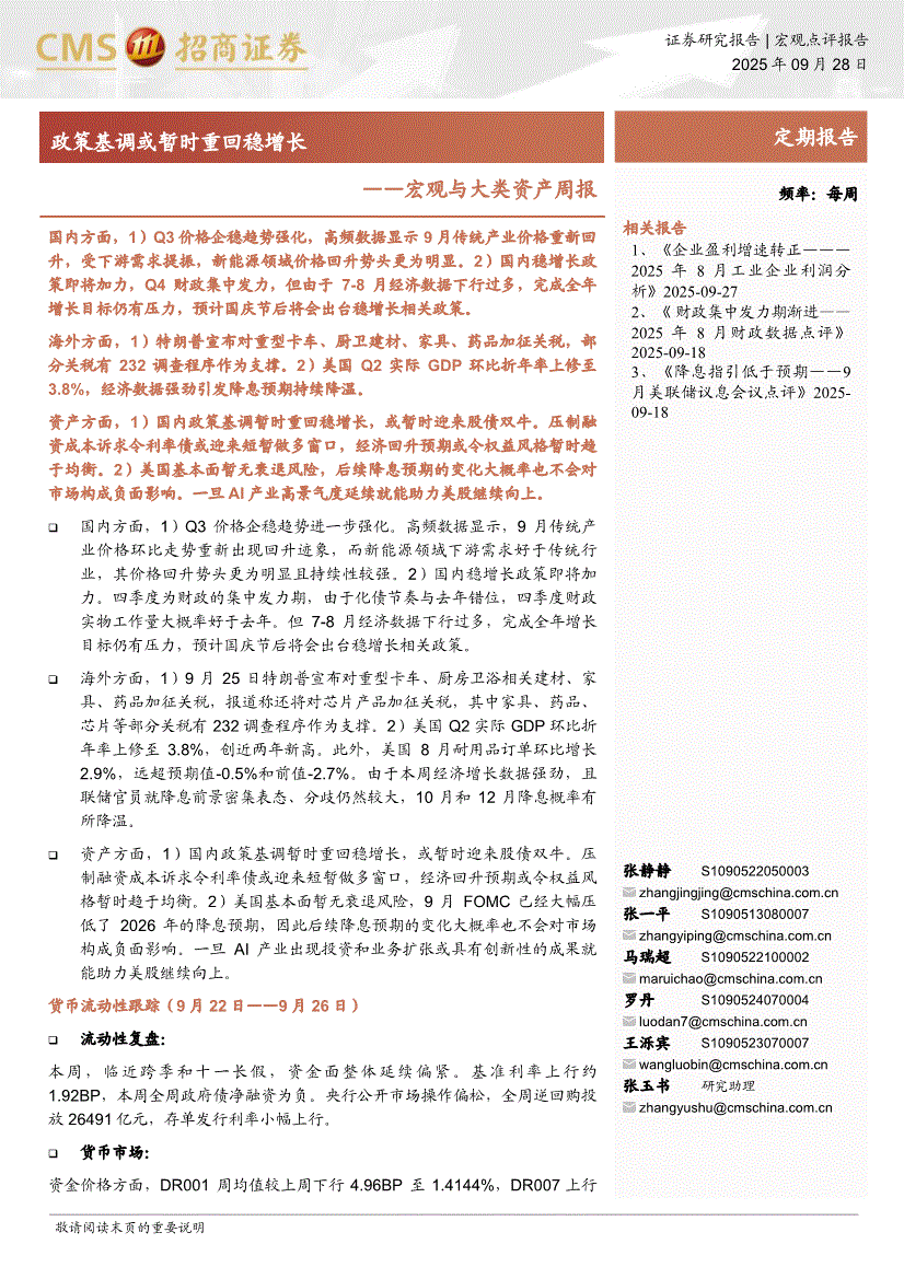 招商证券-宏观与大类资产周报:政策基调或暂时重回稳增长-250928