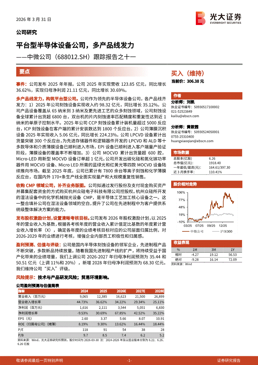 光大证券-中微公司-688012-跟踪报告之十一:平台型半导体设备公司,多产品线发力-260331