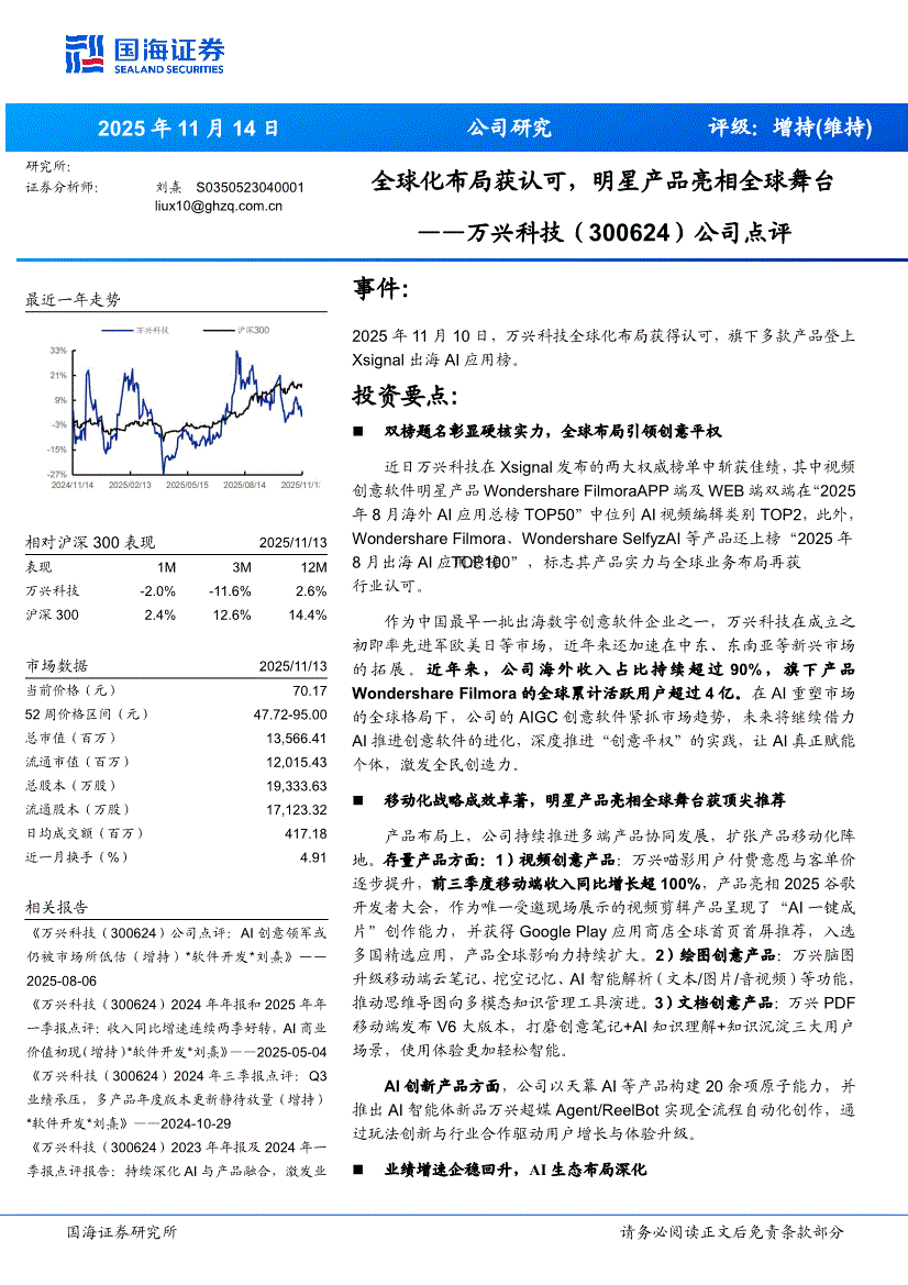 万兴科技:国海证券-万兴科技-300624-公司点评:全球化布局获认可,明星产品亮相全球舞台-251114