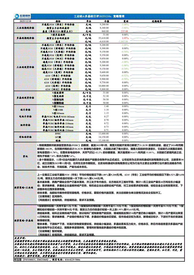 宏源期货-工业硅&多晶硅日评:宽幅整理-251210