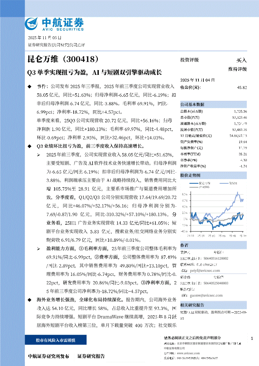中航证券-昆仑万维-300418-Q3单季实现扭亏为盈,AI与短剧双引擎驱动成长-251105