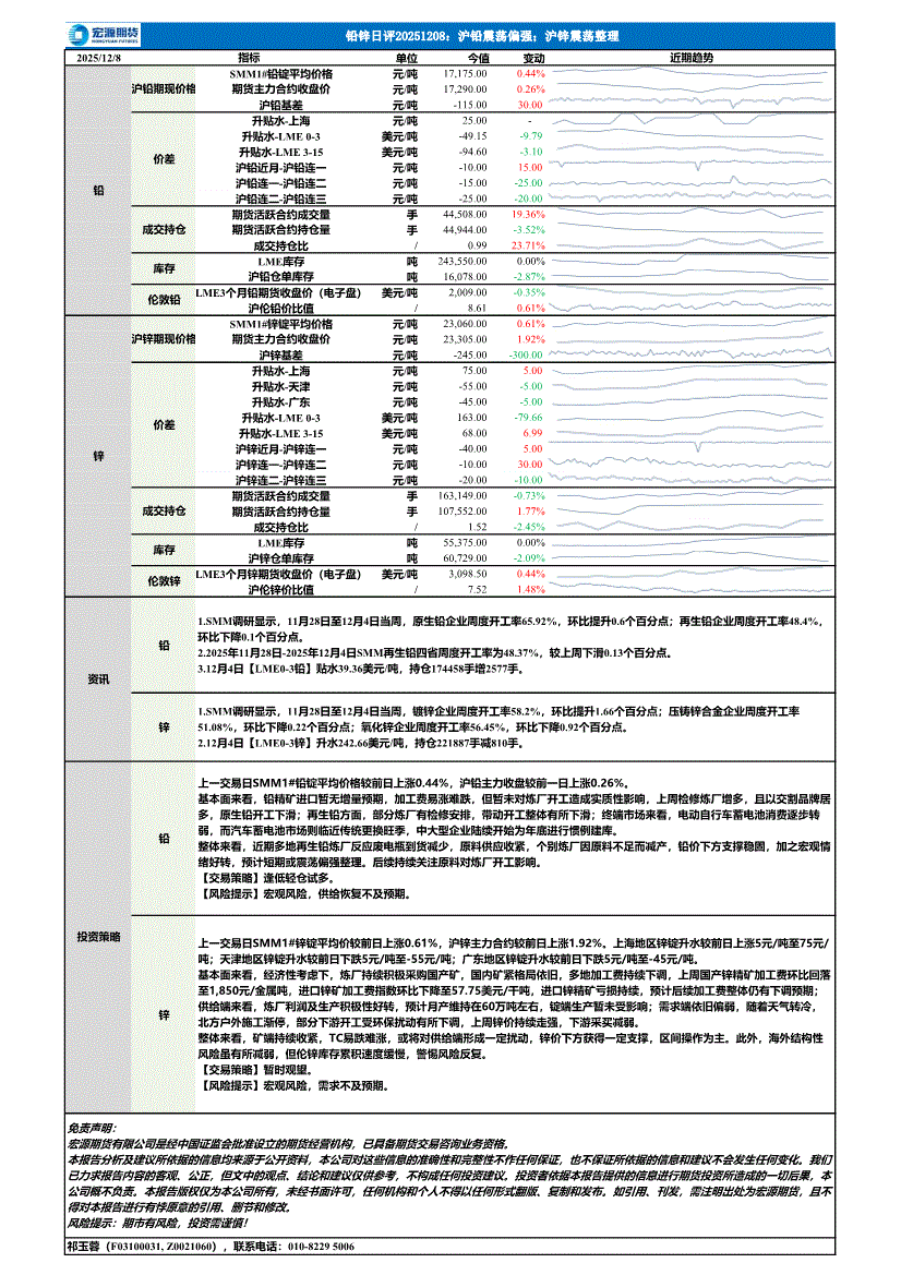 宏源期货-铅锌日评:沪铅震荡偏强;沪锌震荡整理-251208