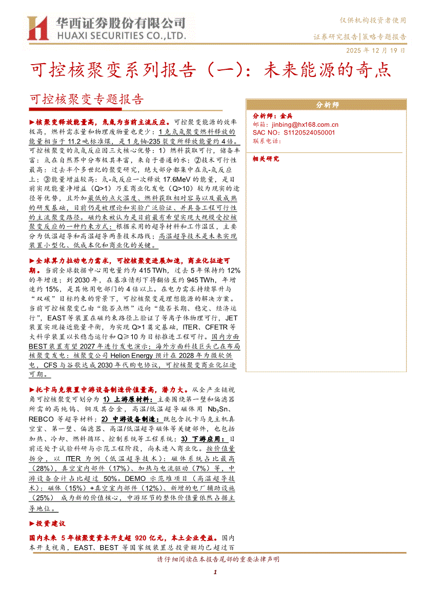 华西证券-可控核聚变专题报告:可控核聚变系列深度(一),未来能源的奇点-251219