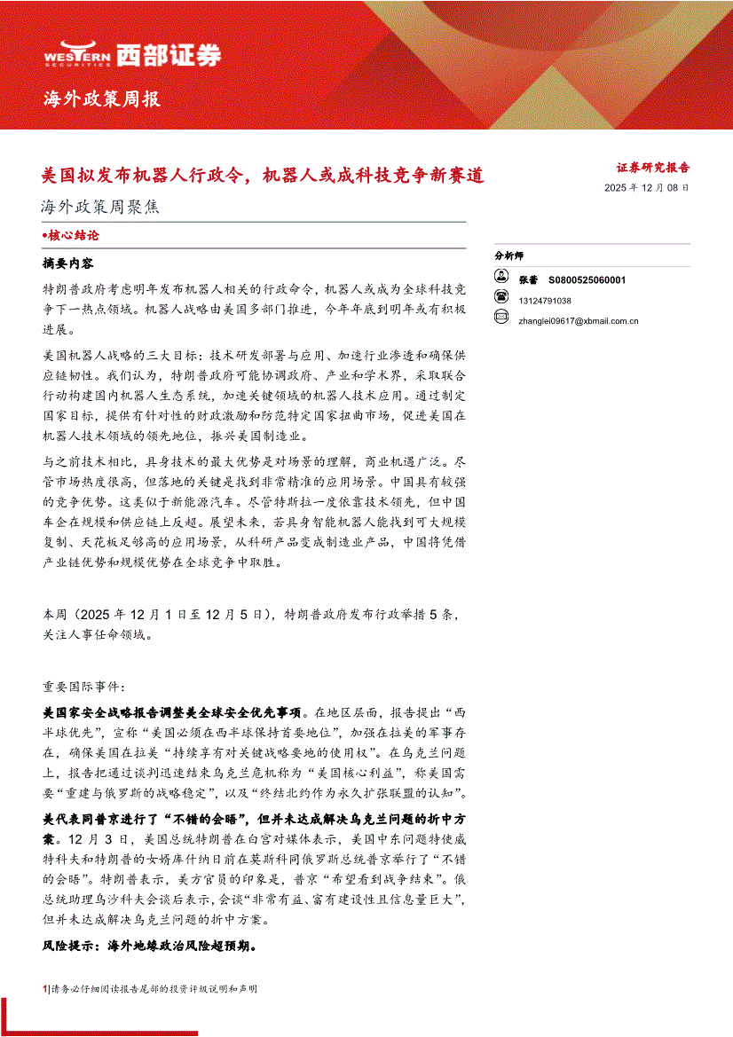 西部证券-海外政策周聚焦:美国拟发布机器人行政令,机器人或成科技竞争新赛道-251208