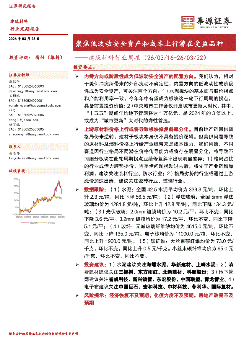 建筑材料行业:华源证券-建筑材料行业周报:聚焦低波动安全资产和成本上行潜在受益品种-260323