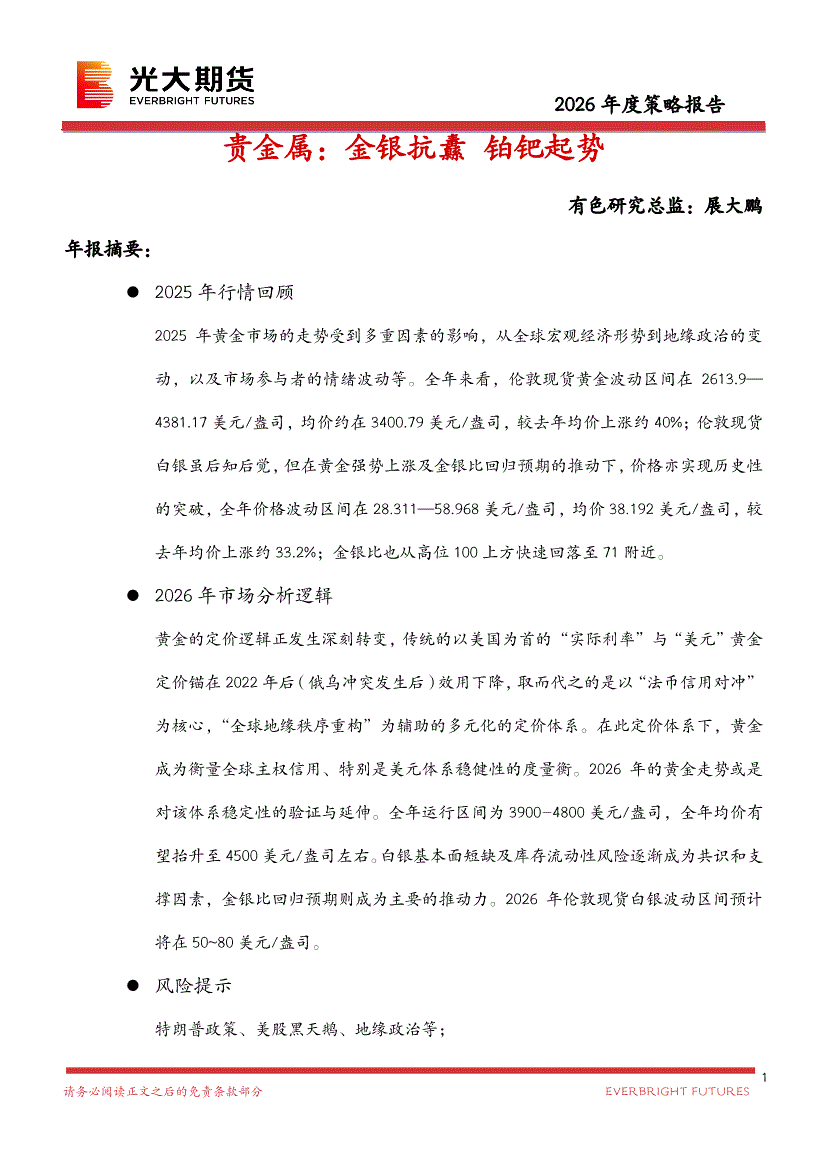 光大期货-贵金属:金银抗纛,铂钯起势-251215