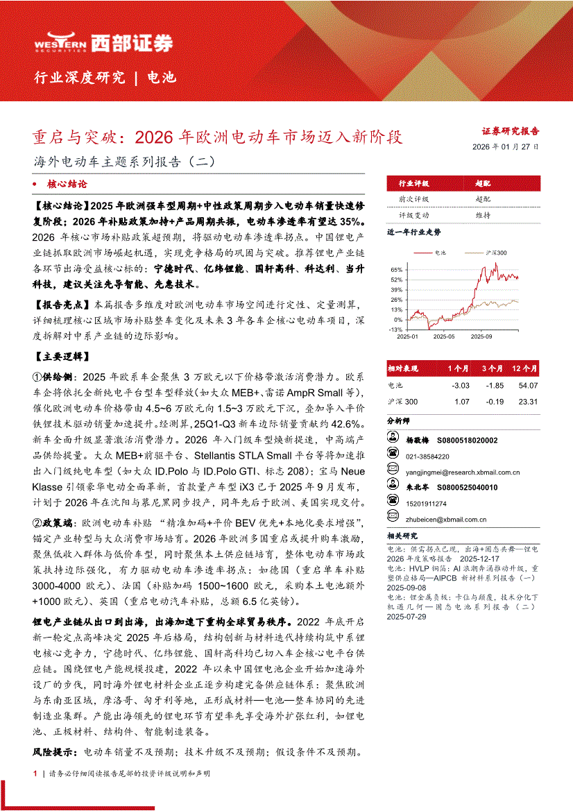 电池行业:西部证券-电池行业海外电动车主题系列报告(二):重启与突破,2026年欧洲电动车市场迈入新阶段-260127