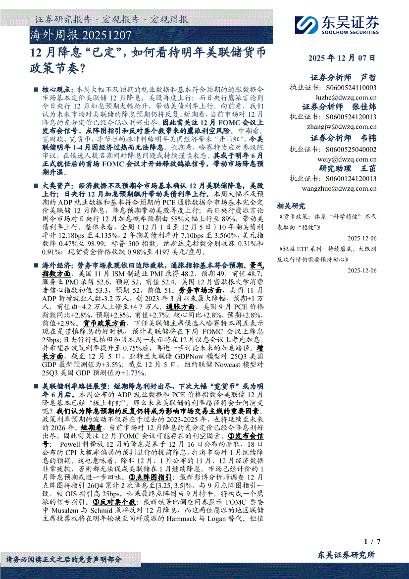 东吴证券-海外周报:12月降息“已定”,如何看待明年美联储货币政策节奏?-251207