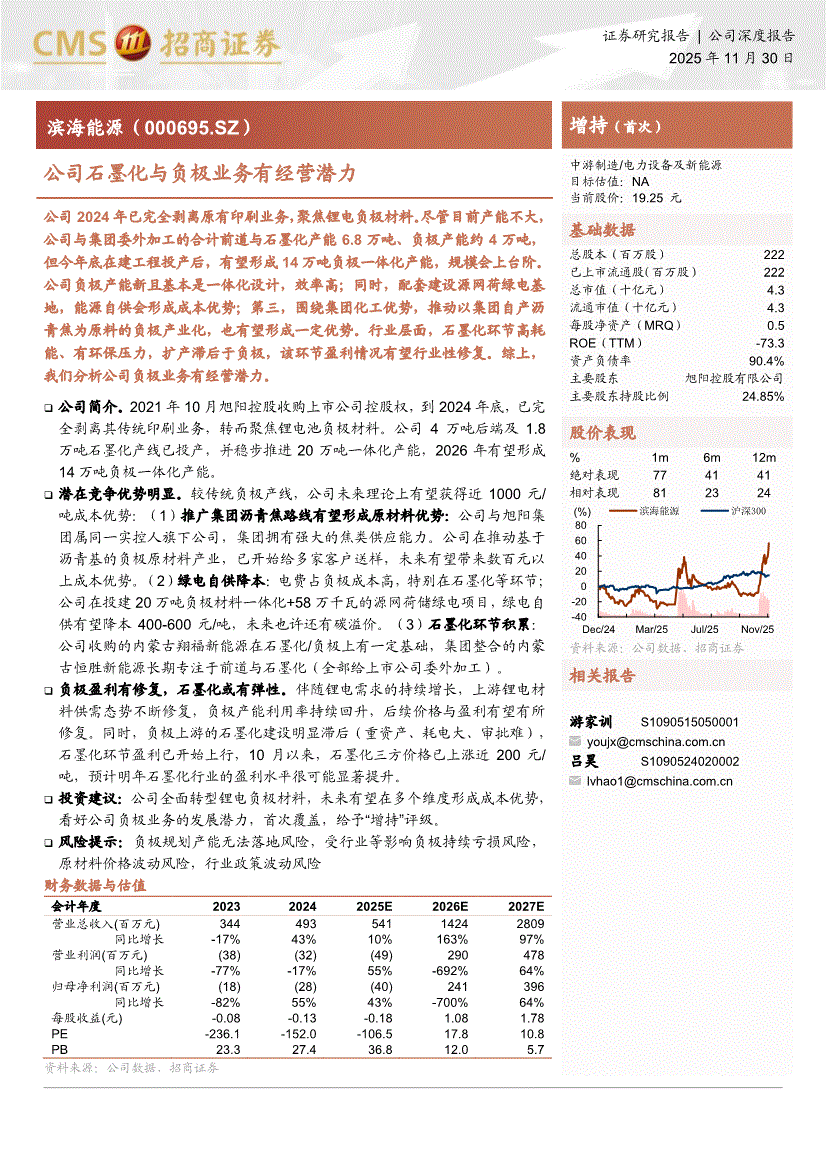 滨海能源:招商证券-滨海能源-000695-公司石墨化与负极业务有经营潜力-251130