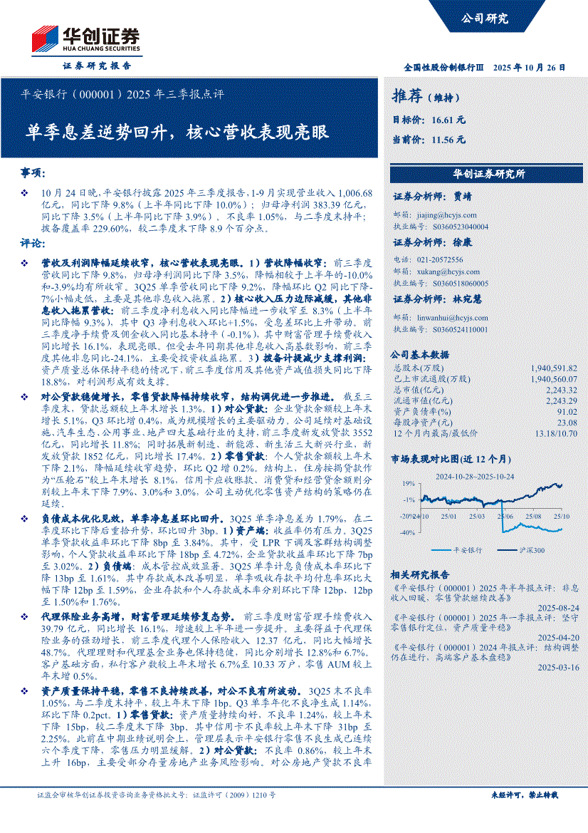 平安银行:华创证券-平安银行-000001-2025年三季报点评:单季息差逆势回升,核心营收表现亮眼-251026