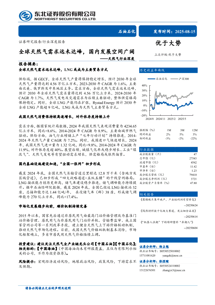 石油石化行业:东北证券-天然气行业深度:全球天然气需求远未达峰,国内发展空间广阔-250815
