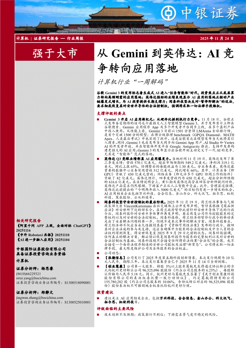 计算机行业:中银国际-计算机行业“一周解码”:从Gemini到英伟达,AI竞争转向应用落地-251124