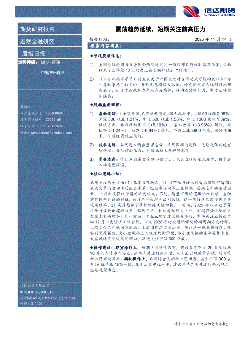 信达期货-股指日报:指数缩量震荡,短期延续区间操作-251113