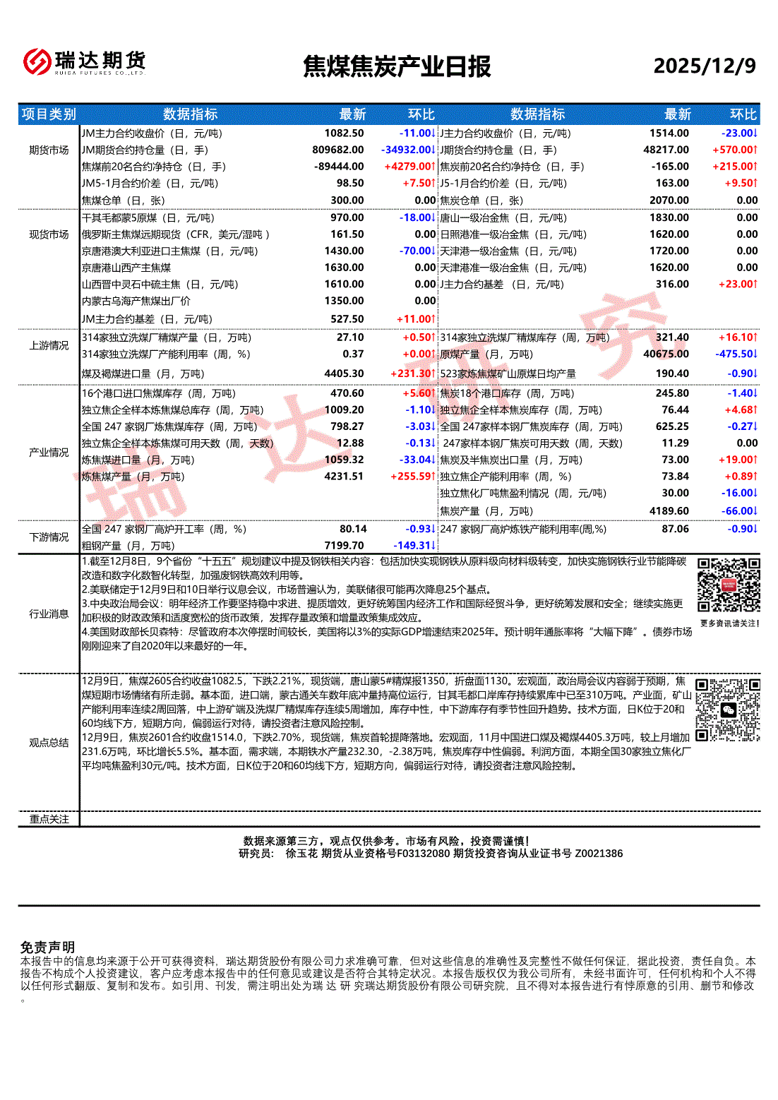 瑞达期货-焦煤焦炭产业日报-251209