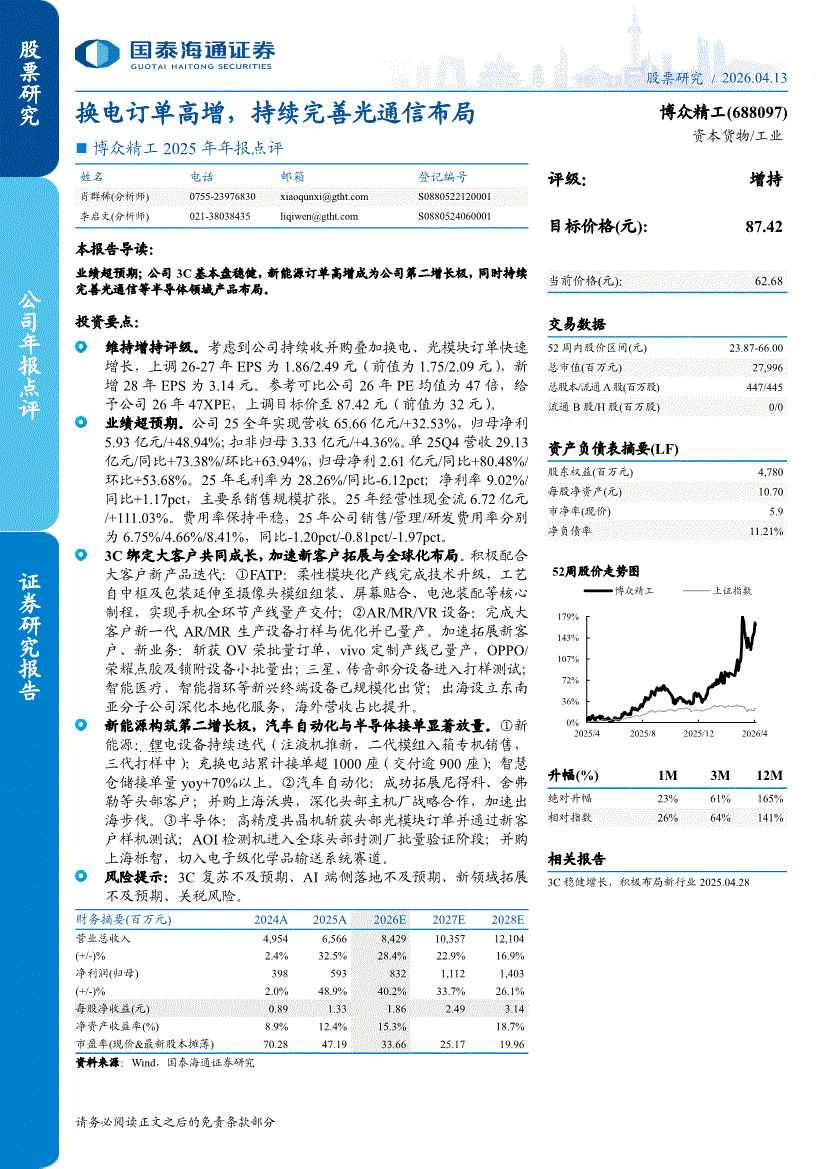 博众精工:国泰海通证券-博众精工-688097-2025年年报点评:换电订单高增,持续完善光通信布局-260413